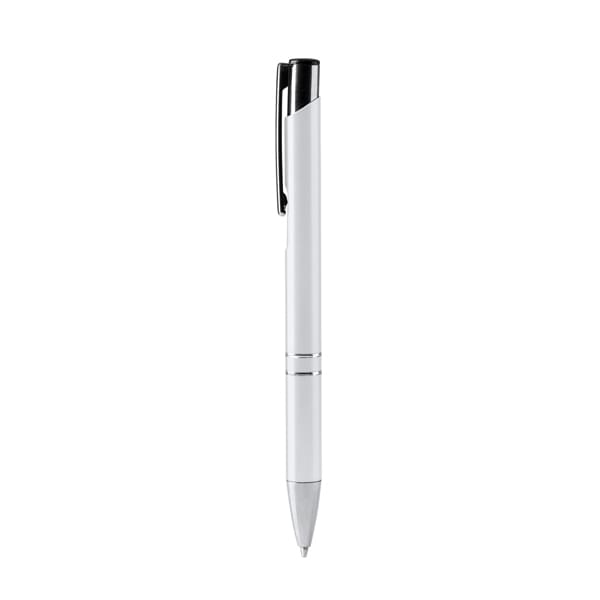 Ball pen with the body in recycled aluminum and push button in the anodized finish. Blue ink jumbo refill.
