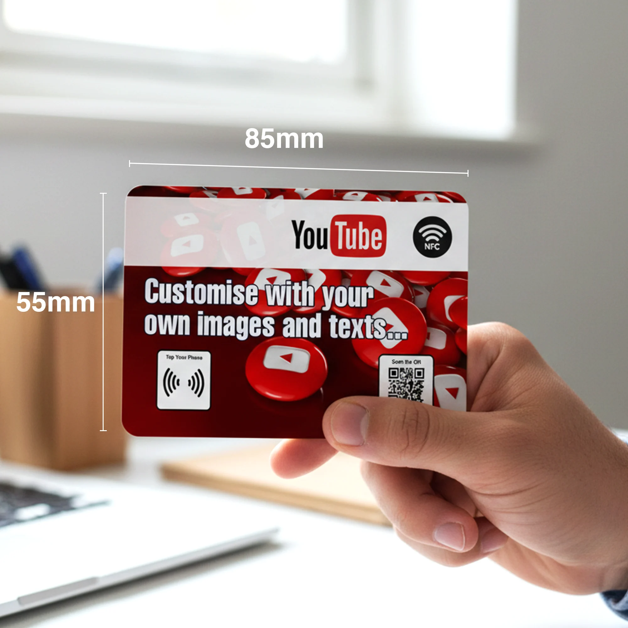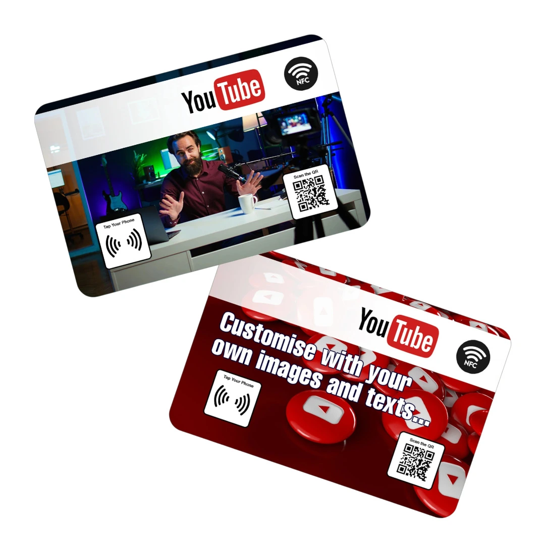 Promote your YouTube channel effortlessly with the NFC YouTube Card, a smart, contactless marketing tool that allows people to open and subscribe to your YouTube channel instantly with a simple tap on their smartphone.