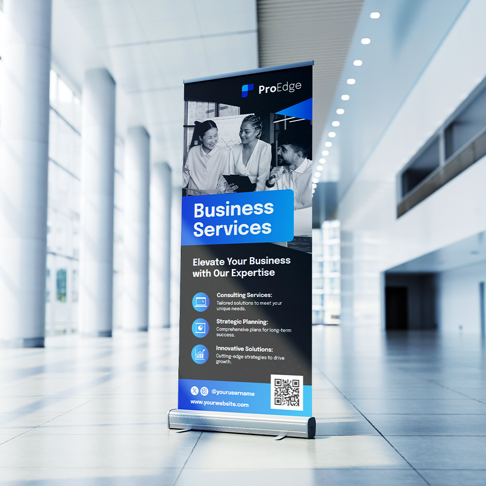 A standard roller banner is a cost-effective solution for your clients to promote their brand, making it perfect for trade shows, exhibitions, and retail environments.