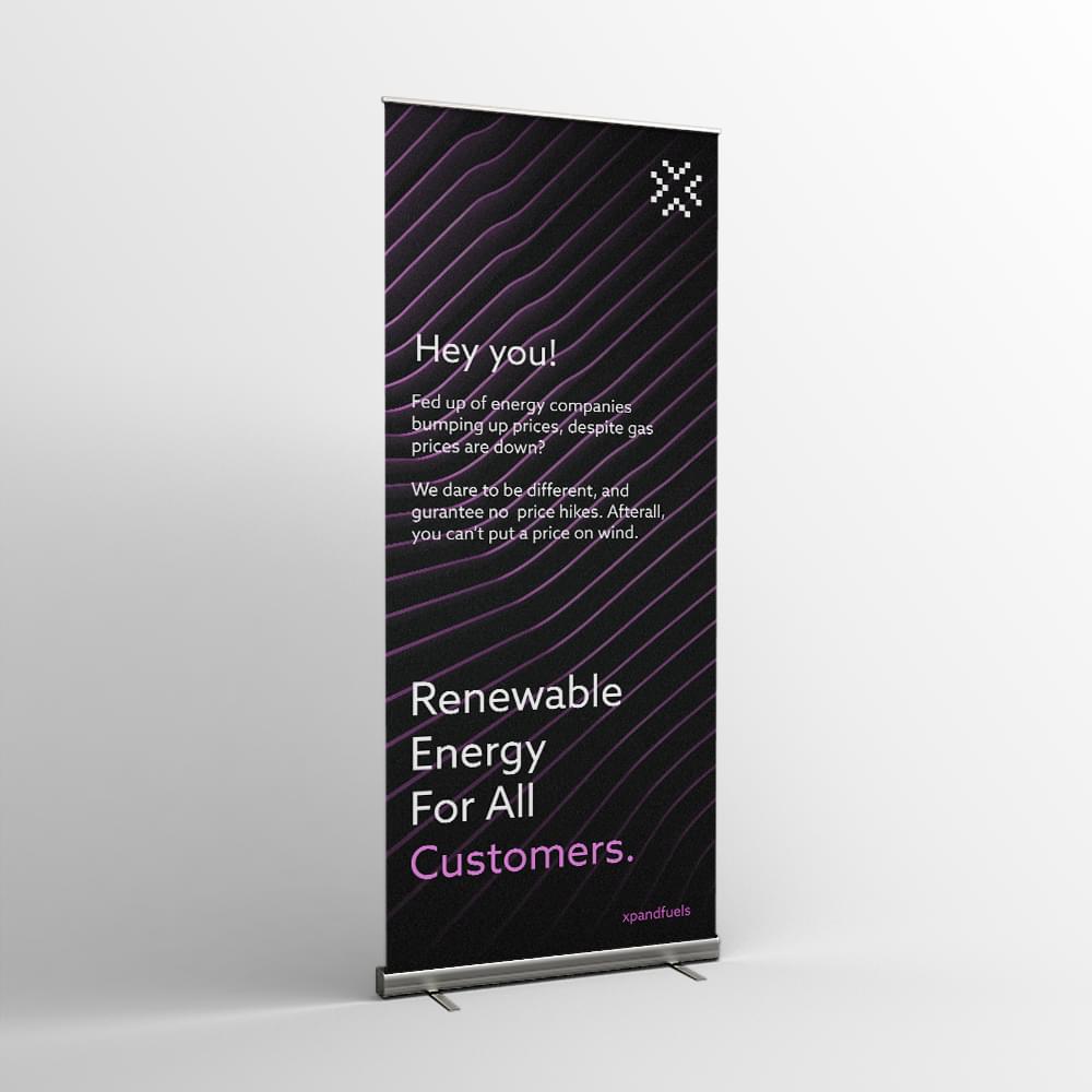 – Roller Banners Printed on durable 330gsm Banner PVC Greyback Roll-Up Film, these banners feature a matt finish for vibrant, professional visuals, while the grey backing effectively blocks light for eye-catching graphics.