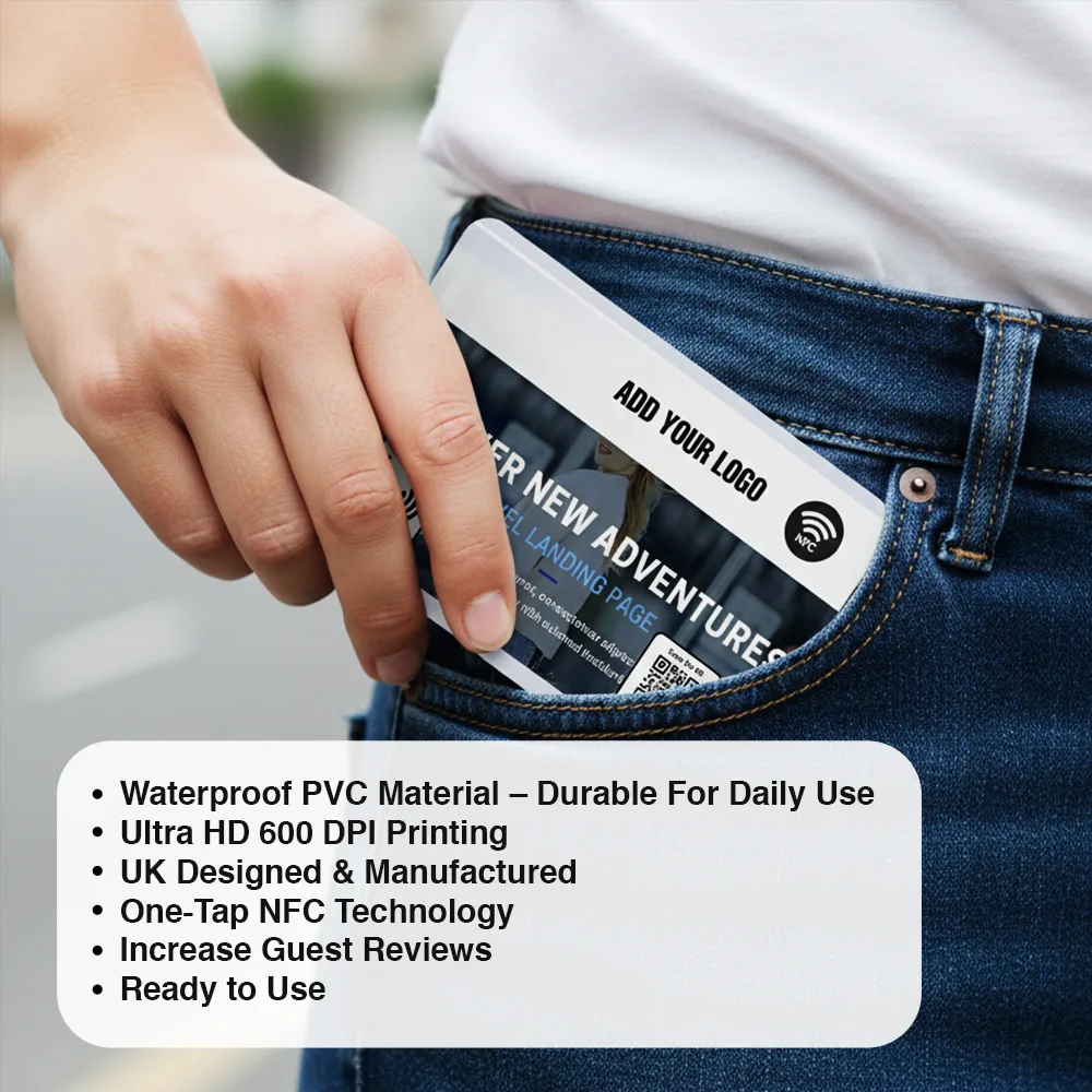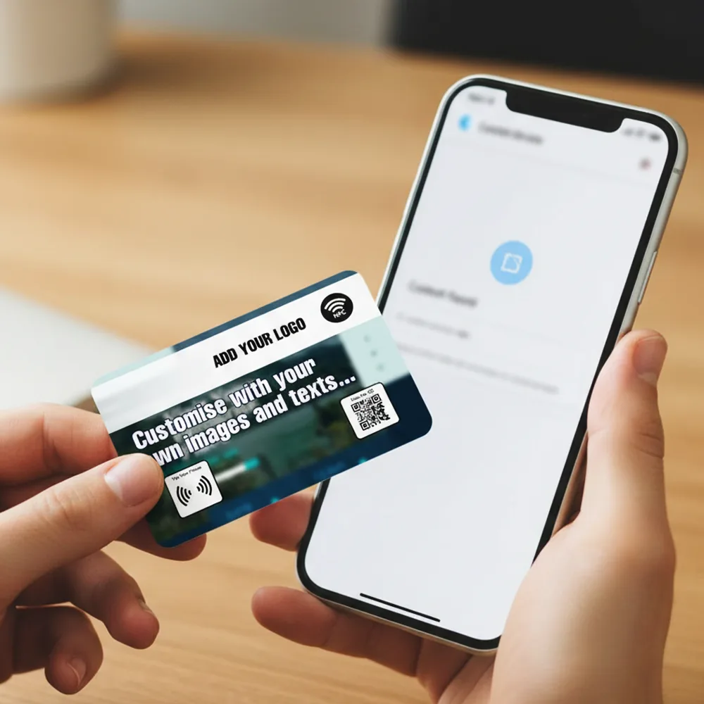 Unlike pre-designed NFC cards with fixed layouts, this product offers complete design freedom. You can fully customise the card to match your brand identity and business style.