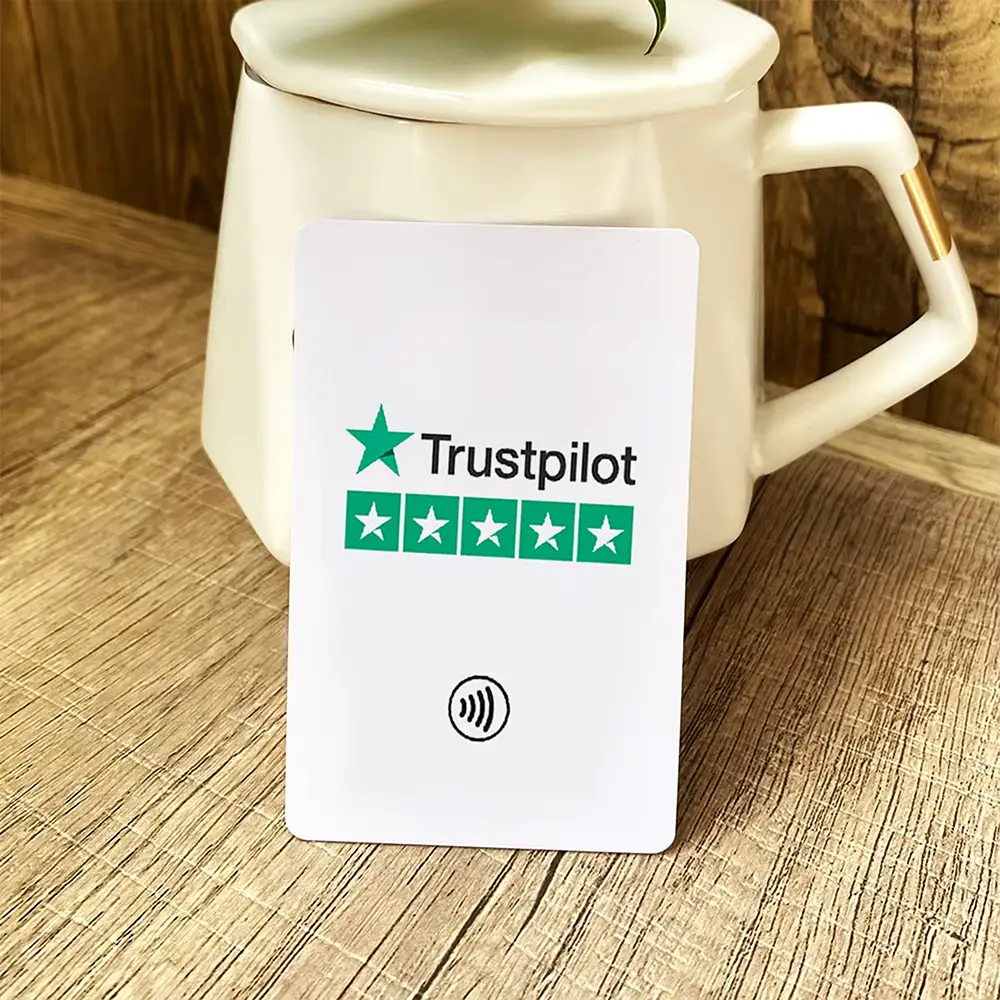 Powered by advanced NFC technology, the card instantly opens your Trustpilot review page on NFC-enabled iOS and Android devices — no QR codes, apps, or manual searching required.
