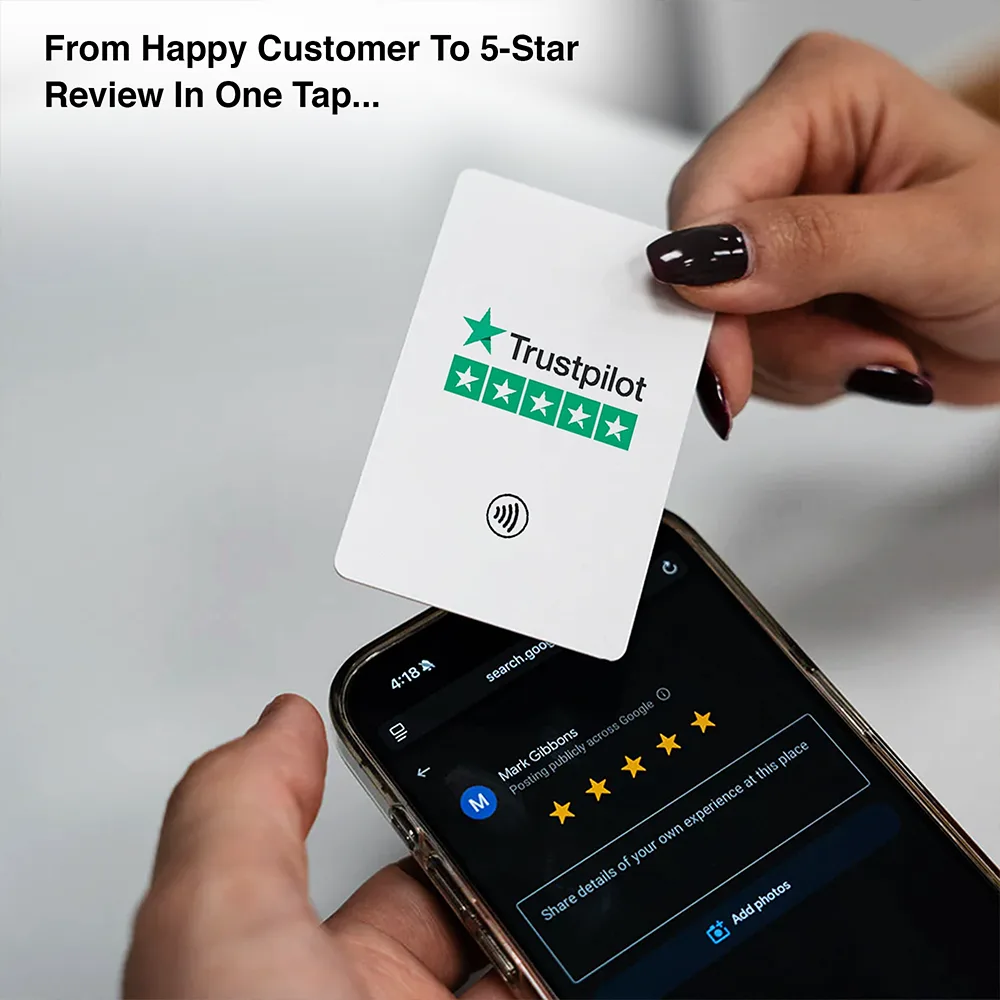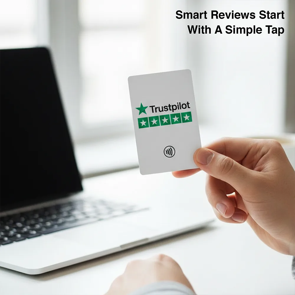 Collect more Trustpilot reviews effortlessly with the NFC Trustpilot Review Card, a smart, contactless solution that allows customers to leave a Trustpilot review instantly with a simple tap on their smartphone.
